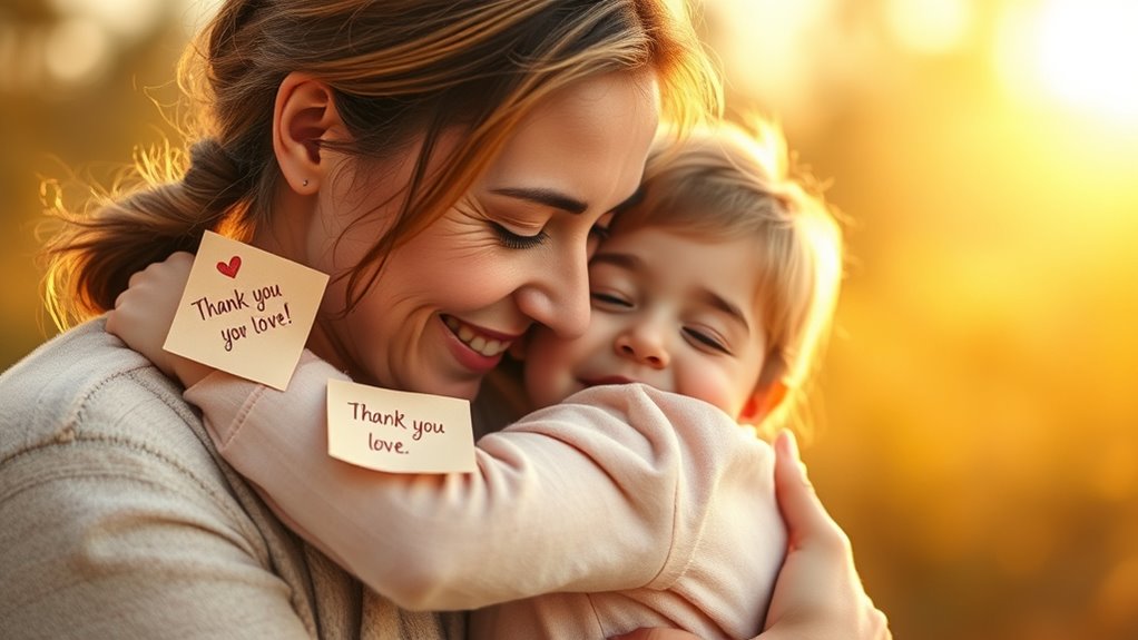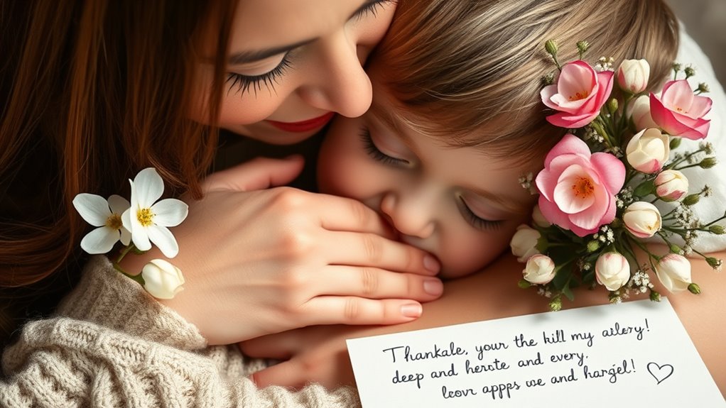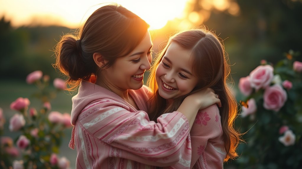 Echte Dankbarkeit gegenüber deiner Mutter auszudrücken bedeutet, Gefühle zu teilen, die direkt aus deinem Herzen kommen, ohne Zögern oder Heuchelei. Wenn du mütterliche Dankbarkeit offen zeigst, demonstrierst du, wie viel ihre Liebe und ihre Opfer dir wirklich bedeuten. Emotionale Ausdruckskraft ist kraftvoll; sie verbindet dich tief und lässt deine Wertschätzung spüren. Halte deine wahren Gefühle nicht zurück—sage, was du meinst, sei es durch Worte, Gesten oder kleine Taten. Authentizität in deiner Dankbarkeit macht sie bedeutungsvoller und berührt ihre Seele. Diese Ehrlichkeit schafft eine Bindung, die auf Aufrichtigkeit basiert, und zeigt ihr, dass ihre Bemühungen nicht unbemerkt bleiben. Deine aufrichtigen Gefühle offenbaren die Tiefe deiner Wertschätzung und verwandeln alltägliche Momente in herzliche Erinnerungen, die sie für immer schätzen wird. Emotionale Bindungen aufbauen durch aufrichtige Ausdrucksweisen können eure Beziehung noch stärker machen.