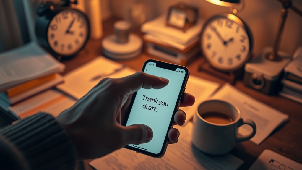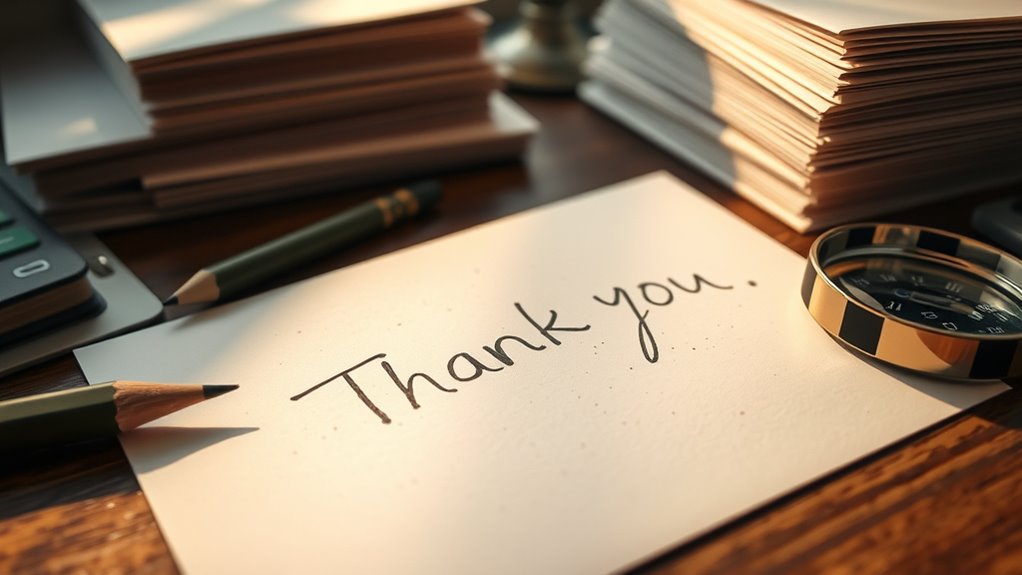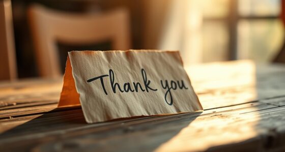Beim Verfassen von Dankesnachrichten solltest du häufige Fehler vermeiden, wie zu allgemeine oder vage Formulierungen, die unaufrichtig wirken können. Personalisiere deine Nachricht, indem du spezifische Details erwähnst und einen warmen Ton wählst. Verlasse dich nicht zu sehr auf formelle Sprache oder verzögere deinen Dank—Pünktlichkeit ist wichtig. Überprüfe deine Nachricht sorgfältig, um Fehler zu vermeiden und Professionalität zu zeigen. Gehe zudem über das Geschenk oder die Gefälligkeit hinaus, indem du deine anhaltende Wertschätzung ausdrückst, und halte deine Nachricht aufrichtig. Erforsche weiter, um zu lernen, wie du herzliche Dankesschreiben verfassen kannst, die einen bleibenden Eindruck hinterlassen.