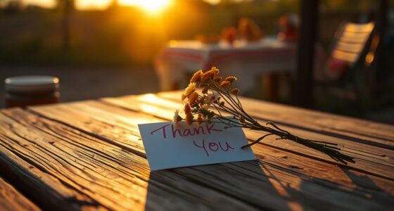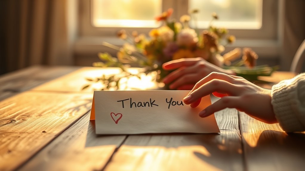 Haben Sie schon einmal bemerkt, wie ein Dankeschön, das spezifische Handlungen oder Qualitäten erwähnt, sich viel herzlicher anfühlt? Wenn Sie Ihre Worte personalisieren, senden Sie klare visuelle Hinweise, die auf echte Wertschätzung hinweisen. Gestische Ausdrucksformen, wie ein warmes Lächeln oder Blickkontakt, verstärken die Aufrichtigkeit Ihrer Botschaft. Indem Sie bestimmte Qualitäten oder Momente hervorheben — zum Beispiel, Ihrer Mutter für ihre Geduld während der geschäftigen Morgen zu danken — machen Sie Ihre Dankbarkeit greifbar. Diese visuellen Hinweise und Gesten machen Ihre Wertschätzung wirkungsvoller und zeigen, dass Sie auf ihre individuellen Bemühungen achten. Personalisierung verwandelt ein einfaches Dankeschön in einen bedeutungsvollen Austausch, der Ihre Bindung stärkt. Zusätzlich kann das Verständnis der Psychologie hinter visuellen Hinweisen Ihnen helfen, aufrichtigere und wirkungsvollere Dankesworte zu formulieren. Es ist nicht nur, was Sie sagen, sondern auch, wie Sie Ihre Wertschätzung visuell ausdrücken, das Ihre Worte wirklich resonieren lässt.